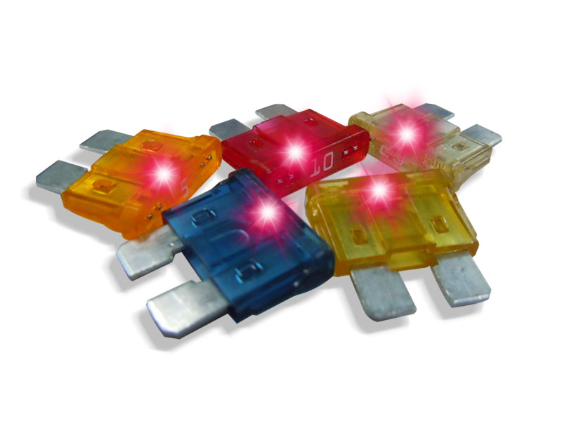 Intelligent Blade Fuse is designed with an indicating device located on top which lights up when the fuse is blown, further provide easy identification for blown fuse that needs replacement inside the fuse box assembly.