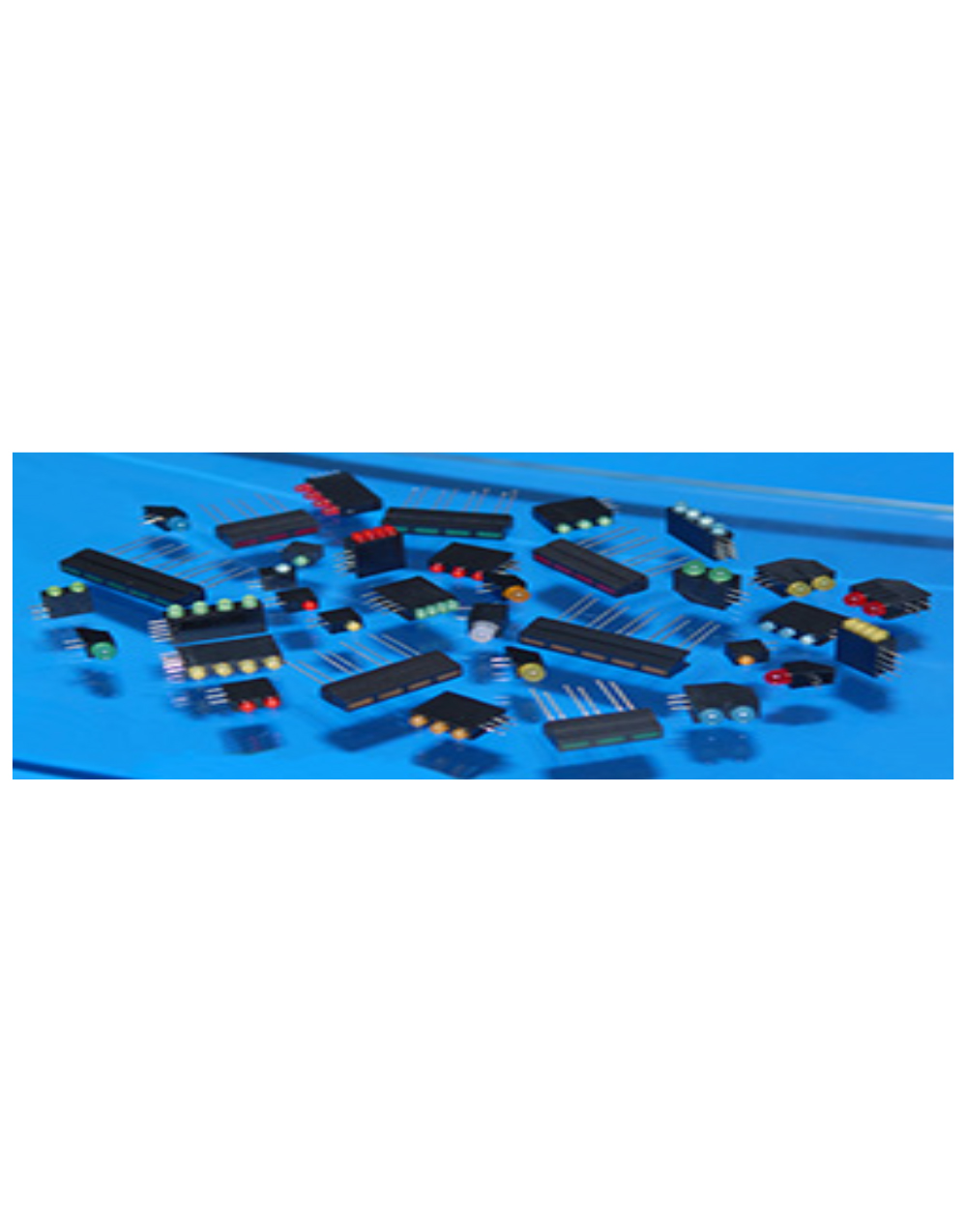 Circuit Board Indicator products include 2mm, 3mm, 5mm, rectangular type. Various array configurations available include backlighting, single-level, bi-level, tri-level, quad-level, dual-block, tri-block and quad-block versions in single color and bi-color, and color choices include green, red, yellow, white, blue and orange. Custom color combinations are available.