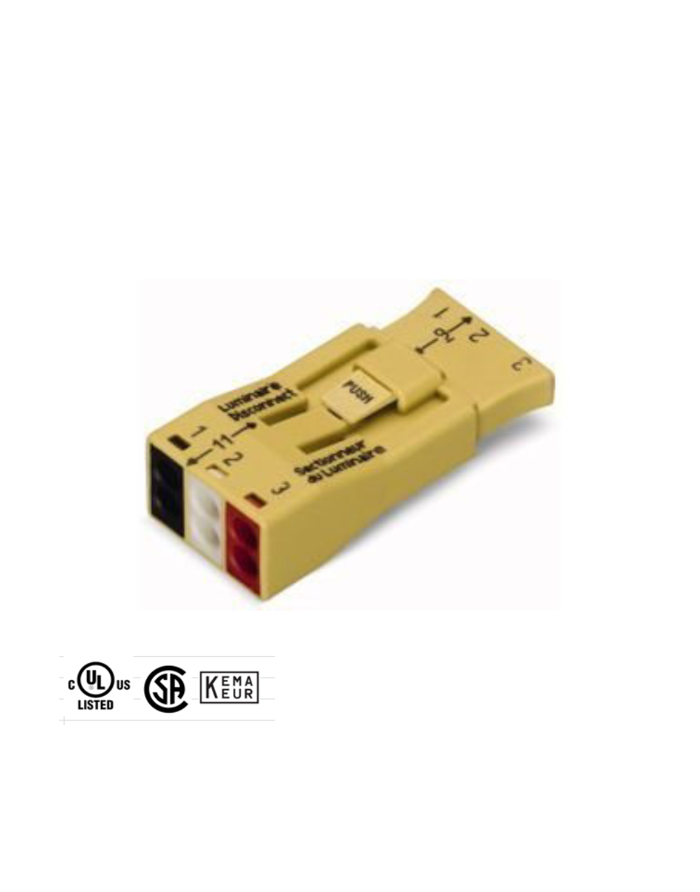 3 Pole PUSHWIRE connector for Luminaire disconnect for switching & dimming applications SOLID CONDUCTORS —18-12 AWG; STRANDED CONDUCTORS —16-12 AWG
