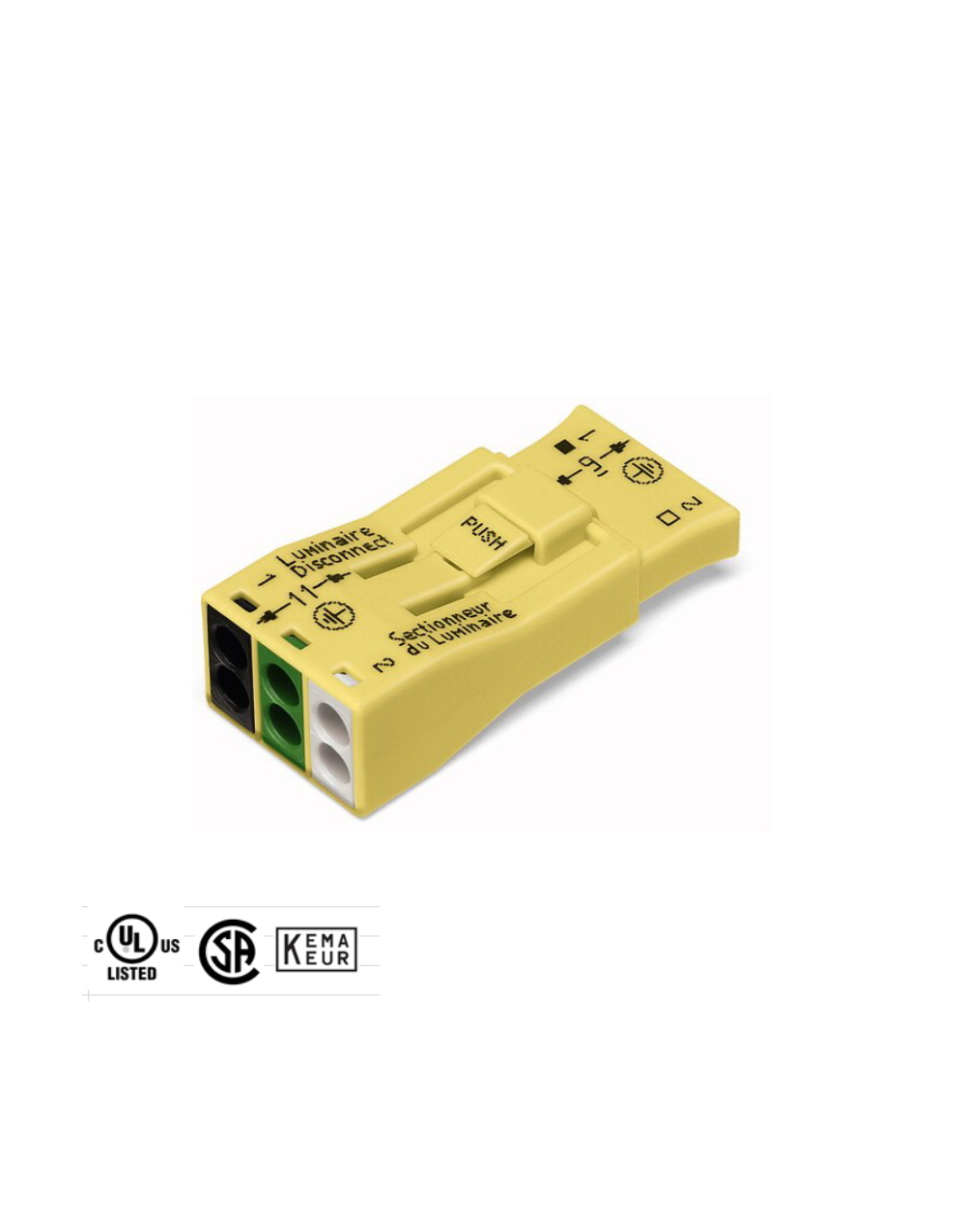 PUSH WIRE® connector for Luminaire disconnect with “make first/break last” ground circuit