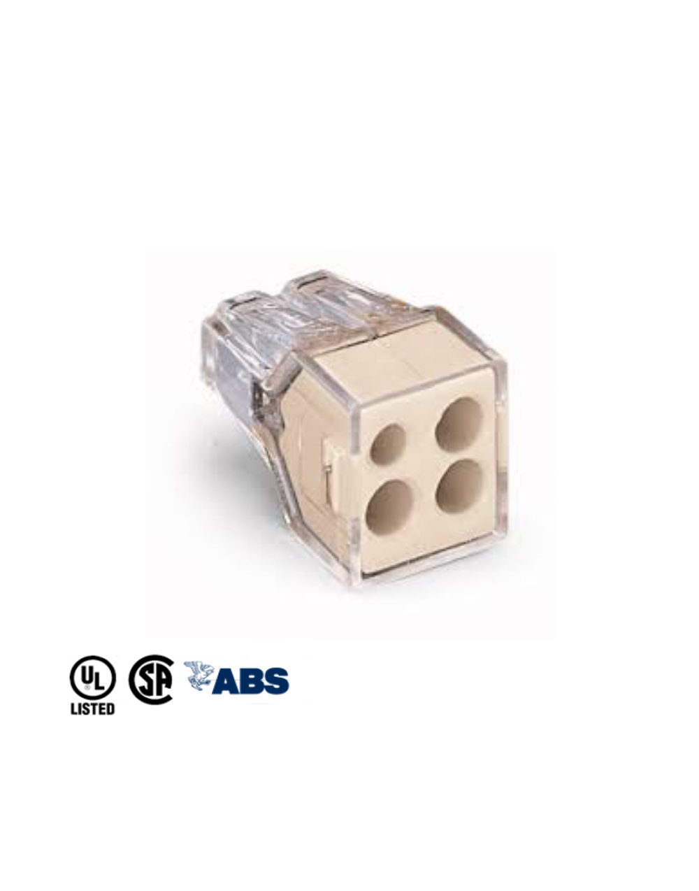 PUSH WIRE® connectors for junction boxes –10AWG – 4 CONDUCTOR CONNECTOR WITH ONE 18 AWG PORT